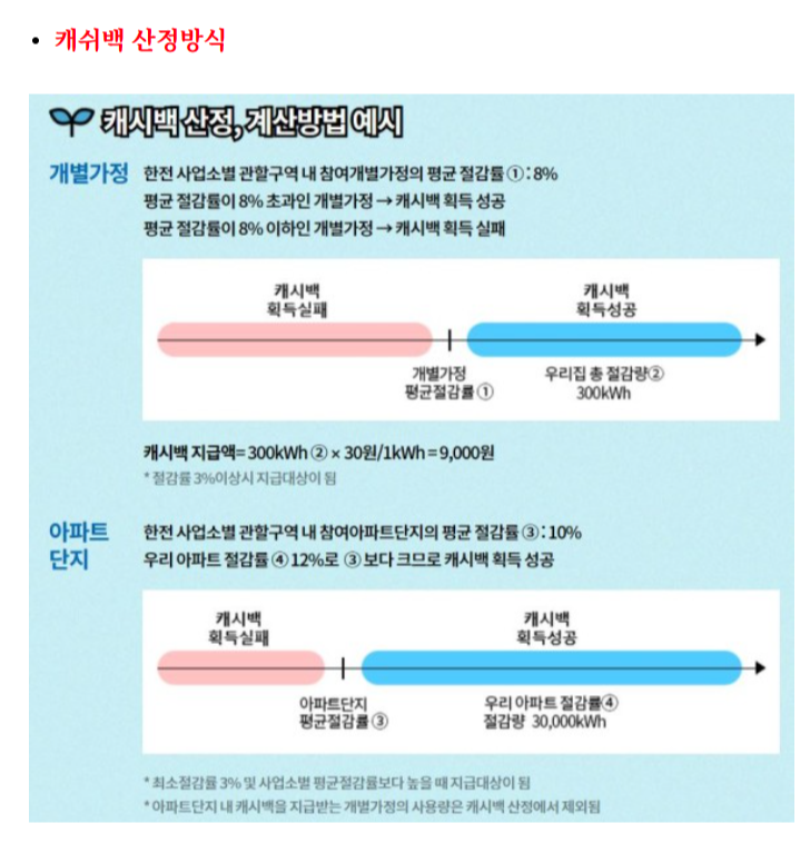 - 지급대상 : 전기 사용을 최소 3% 절감 및 한전 사업소별 평균 절감률보다 높은 절감률을 달성한 참가자
