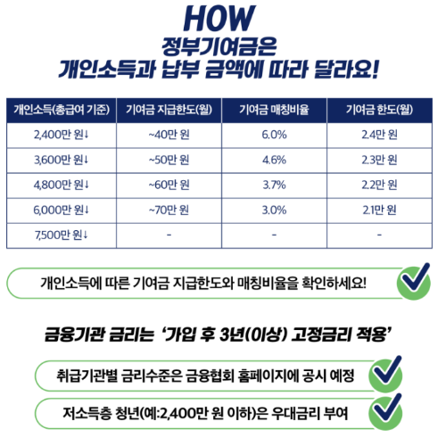 참고로 개인소득이 6000만원 이상 7500만원 이하인 청년들은 정부 기여금은 못 받지만,